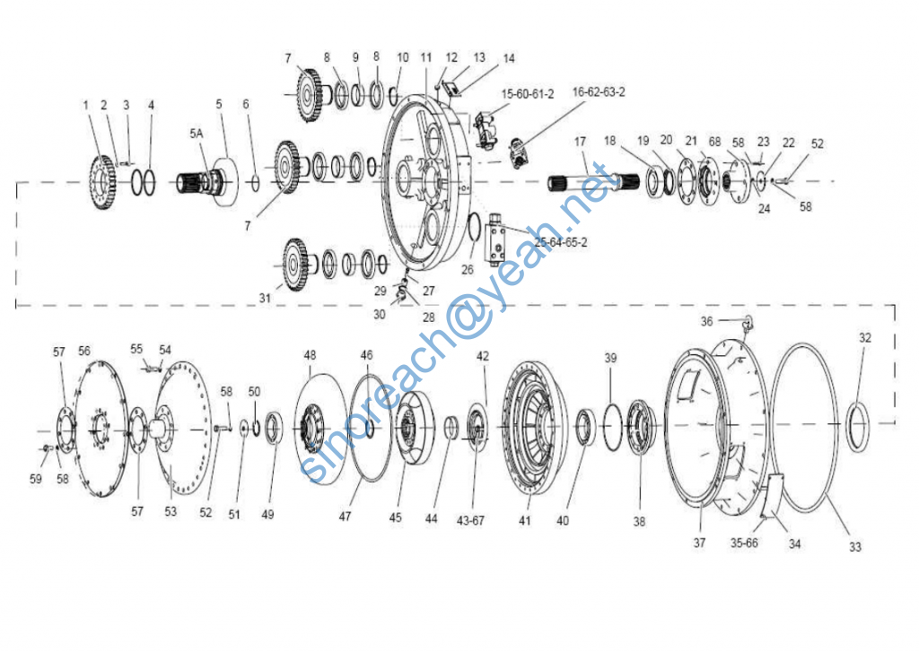 7 输出齿轮(工作泵) Output gear (implement pump) W021700010B (14T-12/24) 1
