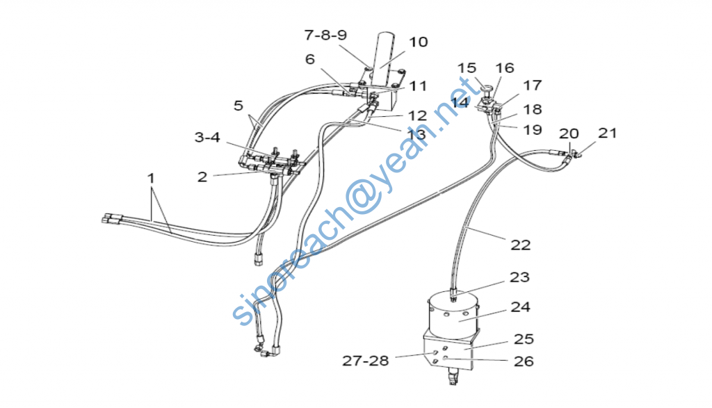 22 气管总成(M14×1.5×1000) Pipe assembly(M14×1.5×1000) Z510100630 1