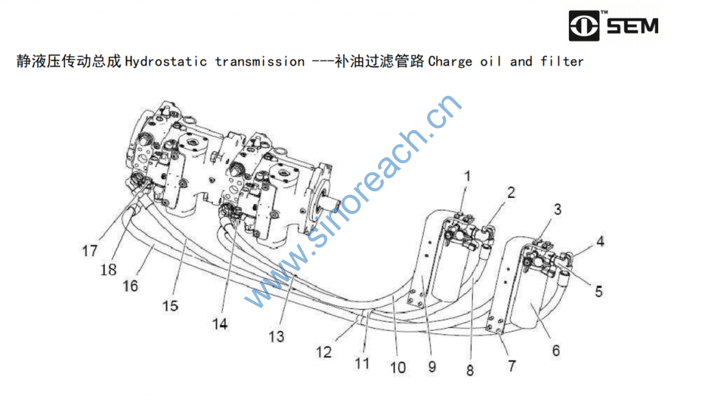 静液压传动总成 Hydrostatic transmission —补油过滤管路 Charge oil and filter