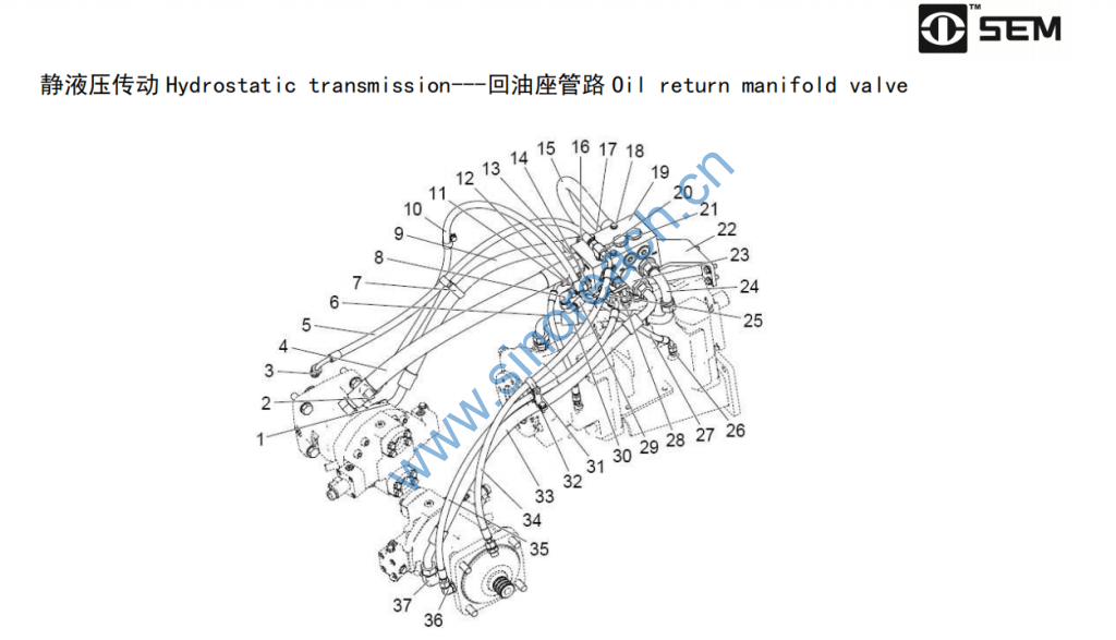 静液压传动 Hydrostatic transmission—回油座管路 Oil return manifold valve