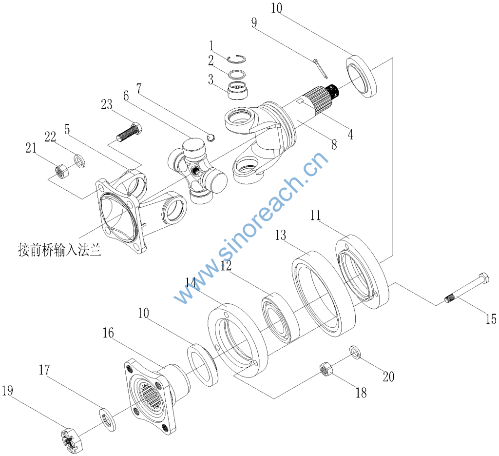 8 Z30.5B.1.1 1 前传动轴叉 Front drive shaft yoke 1 00005-