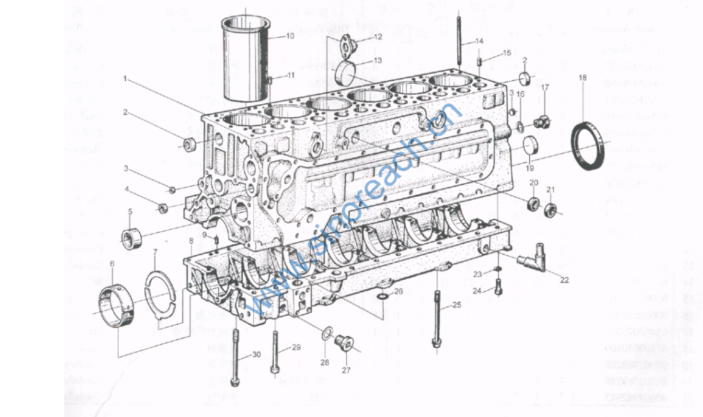 WD615 БЛОК ЦИЛИНДРОВ (рис. 1) CRANKCASE