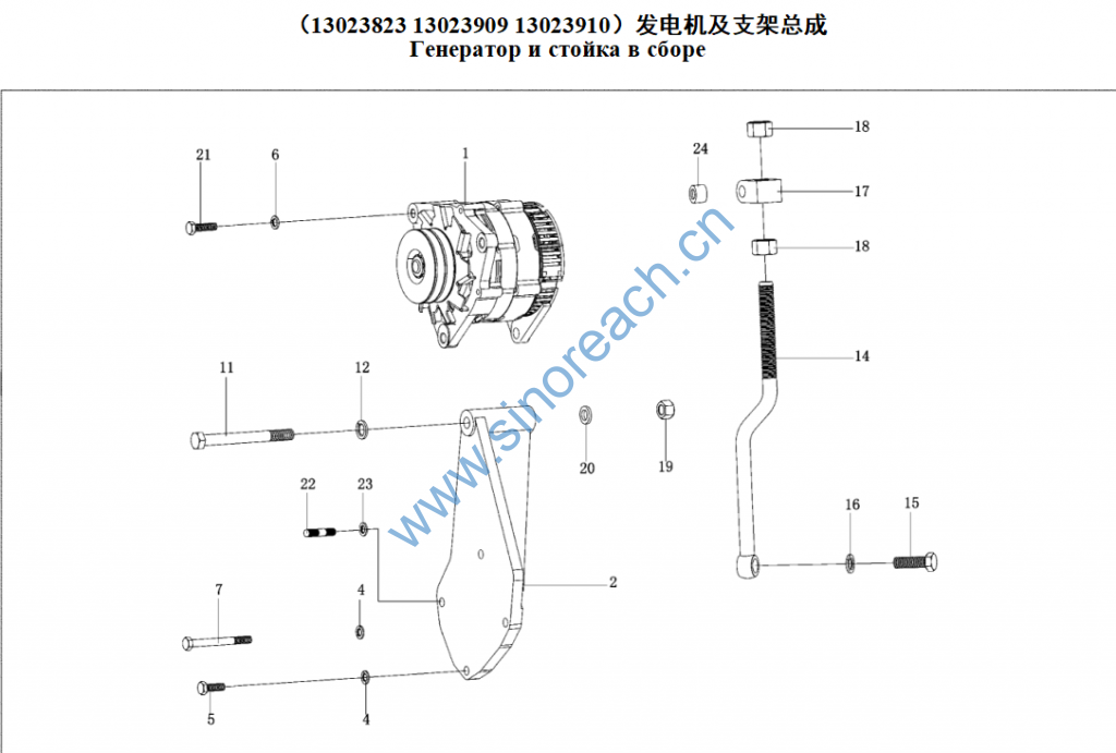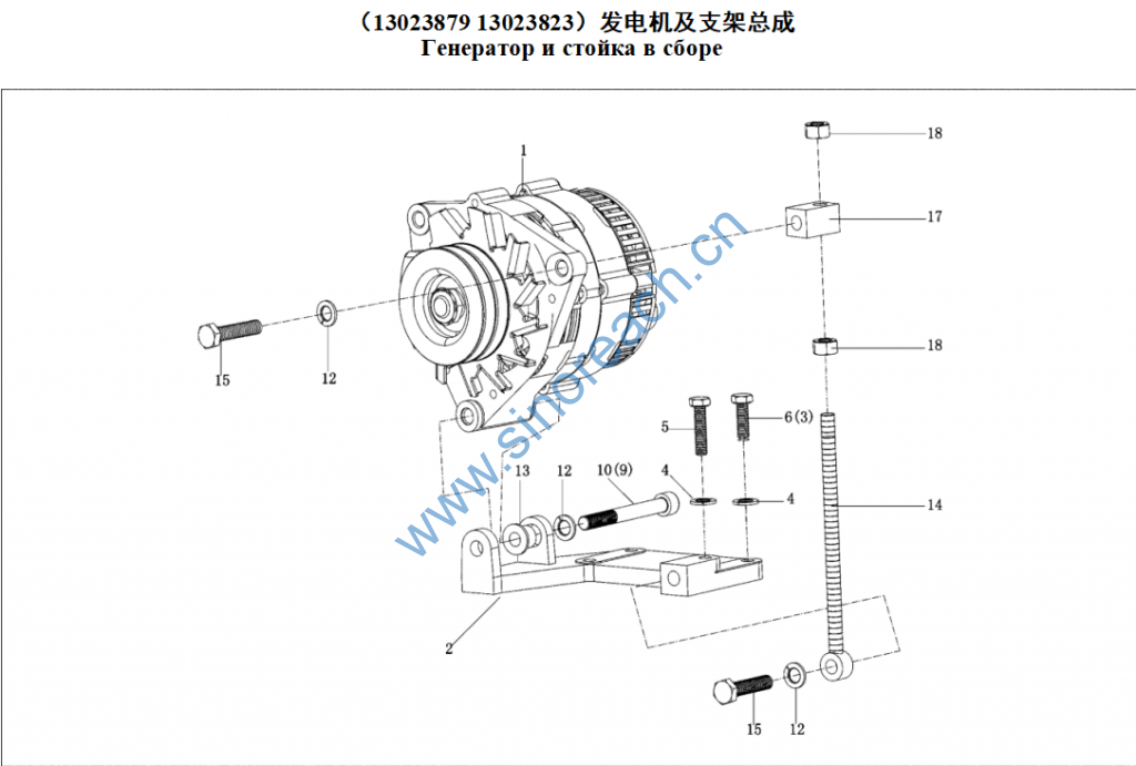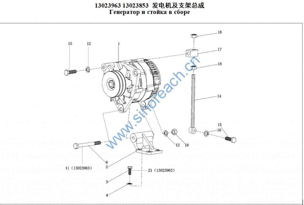 266B 13023963 13023853 发电机及支架总成 Генератор и стойка в сборе