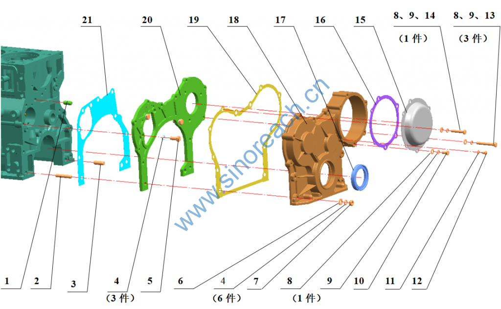 21. HA0173 4100QB-01-026 齿轮室底板垫片 Washer,Gear chamber bottom board 1