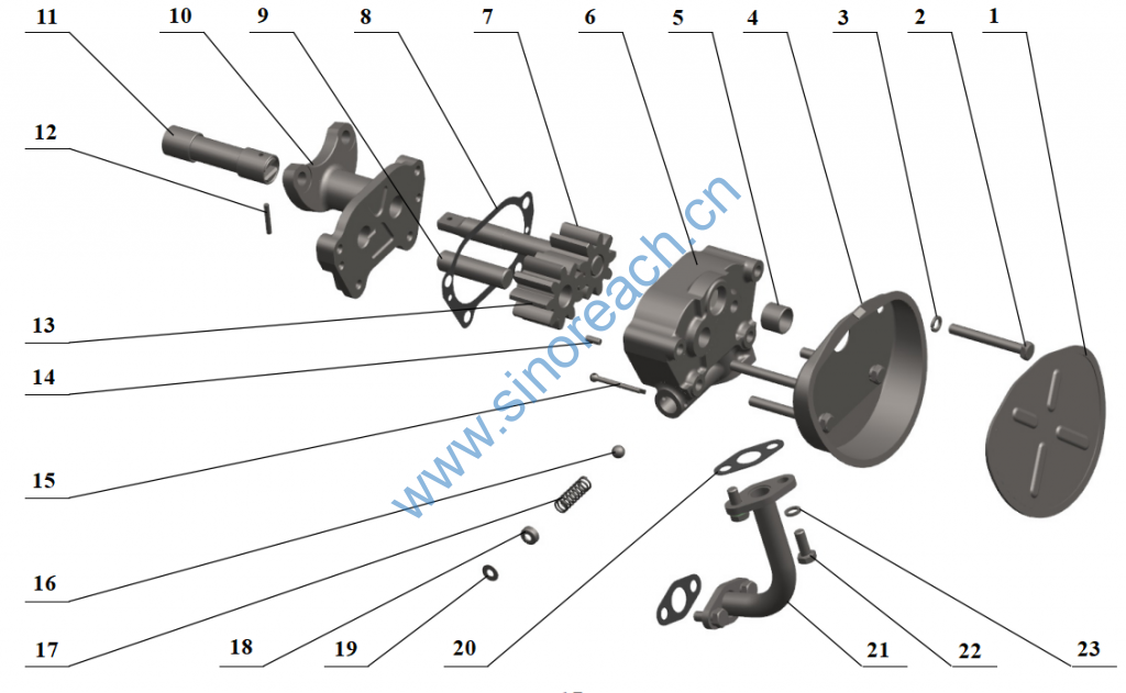 13. 4102QBZ-01.03F-002 机油泵从动齿轮 Oil pump driven gear 1