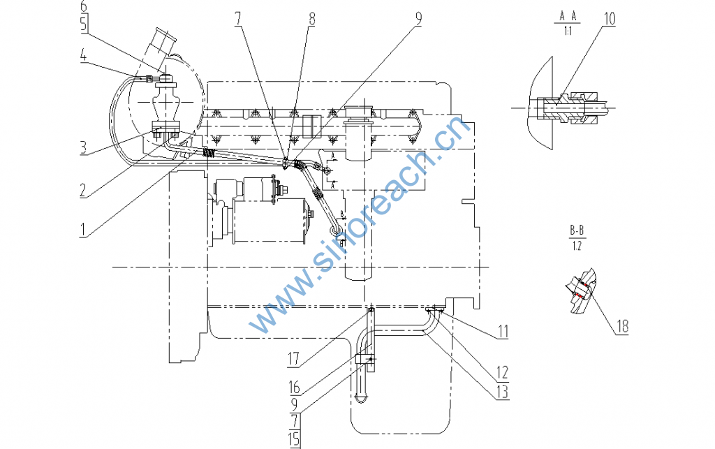 1 S00003328 增压器回油管焊接部件 TURBOCHARGER OIL RETURN TUBE ASSY (WELDED) 1