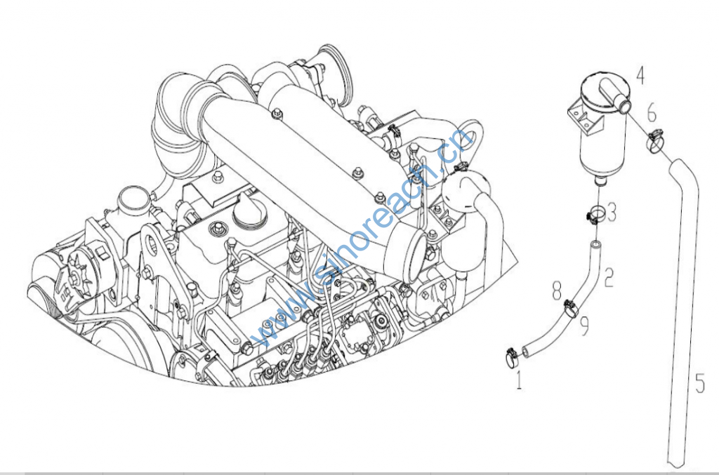 5 D42-500-01 油分离器出气管 OUTLET PIPE, OIL MIST PRECIPITATOR 1