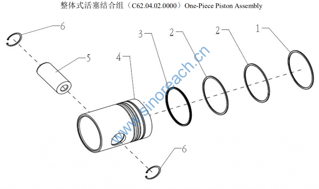 4 C62.04.02.0001 整体式活塞 One-piece piston 6 6 8 8