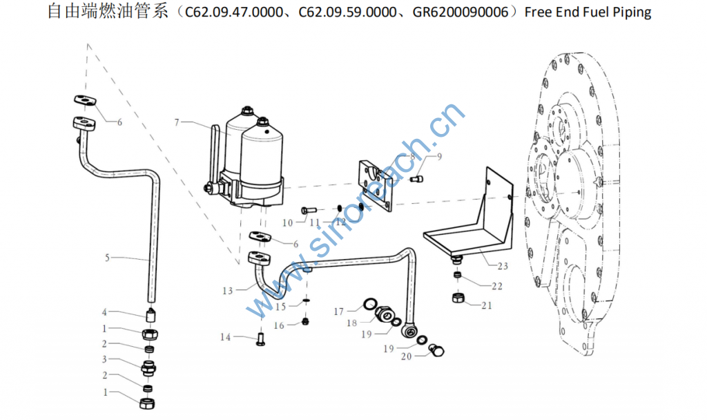 C62.09.47.3000 出油管结合组 Fuel return piping ass. 1 1 1 1