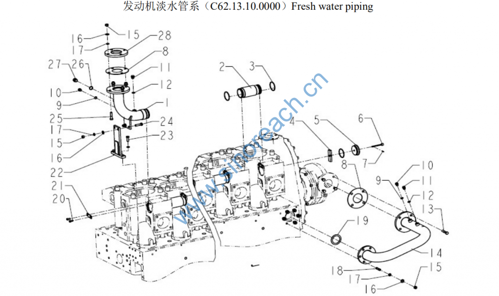 14 C62.13.10.1000 淡水进水管 Fresh water pipe 1 1