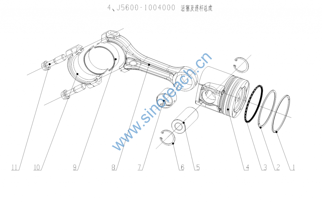 J5600-1004000 活塞及连杆总成 Piston & Connecting Rod Assembly