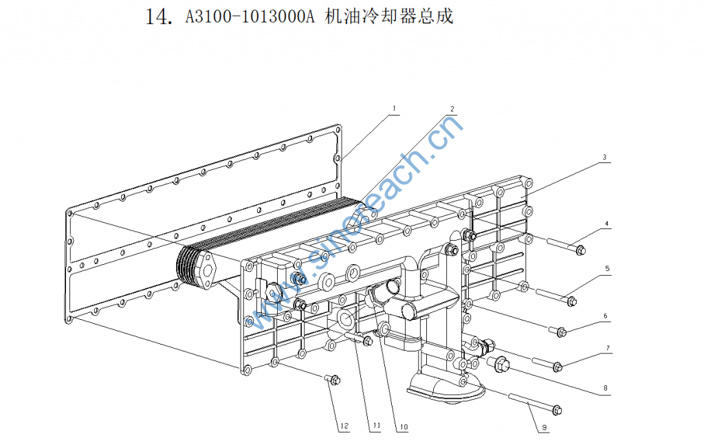 A3100-1013010D 机油冷却器 Oil cooler 1 包括2-12 Including item 2-12