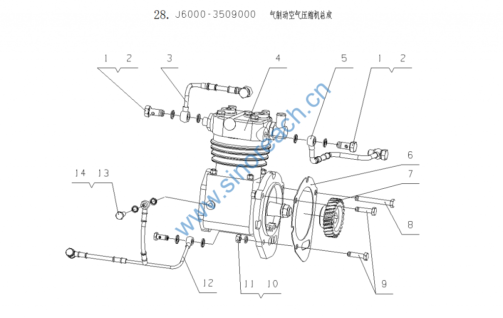 J6000–3509000 气制动空气压缩机总成 Pneumatic Air Compressor Assembly