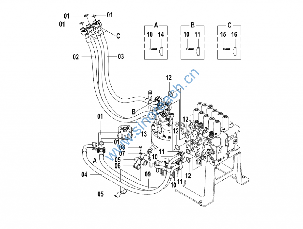 CLG920E/922E 15E0575(C) 主控阀配管 B MAIN HYDRAULIC SYSTEM-MAIN CONTROL VALVE PIPINGS