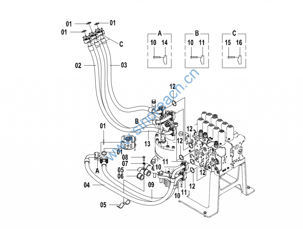 CLG920E/922E 15E1097(C) 主控阀配管 B MAIN HYDRAULIC SYSTEM-MAIN CONTROL VALVE PIPINGS B