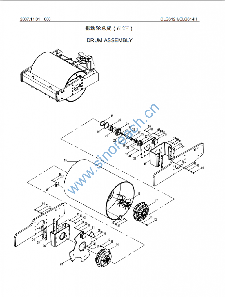 CLG612H/CLG614H 振动轮总成(612H)DRUM ASSEMBLY