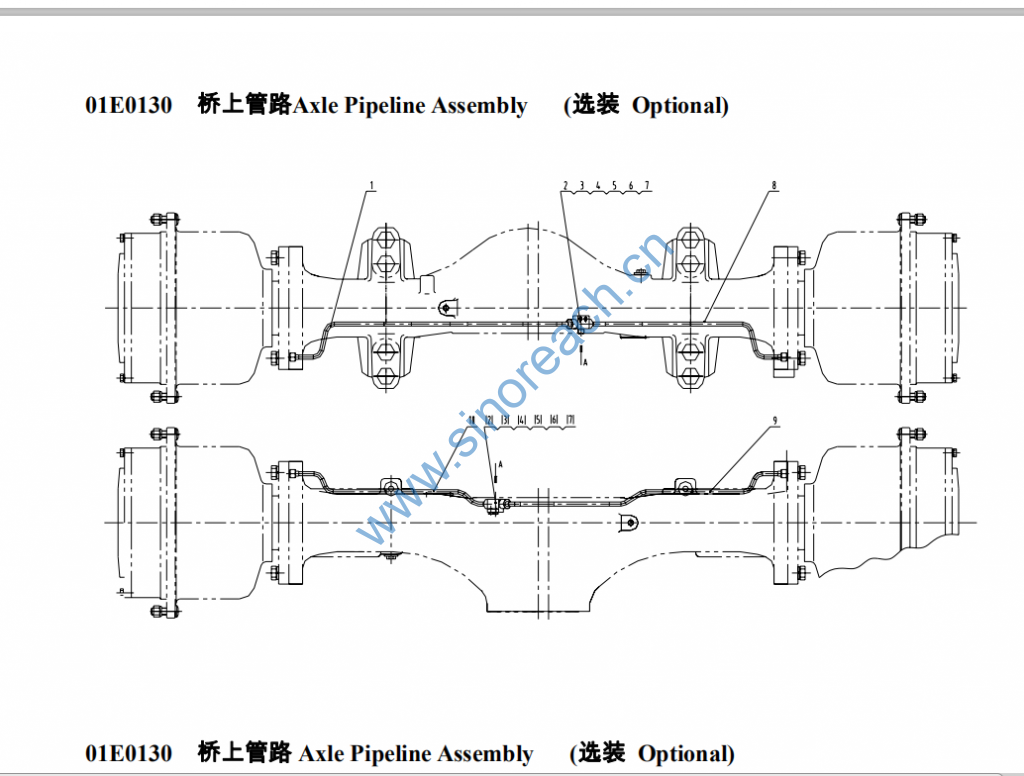 CLG842 01E0130 桥上管路 Axle Pipeline Assembly (选装 Optional)