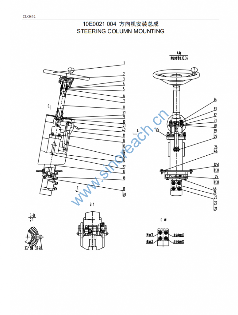 CLG862 10E0021 004 方向机安装总成 STEERING COLUMN MOUNTING