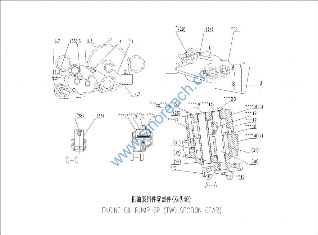 *1 机油泵部件 PUMP GP-ENGINE OIL (TWO SECTION GEAR) C15AB-6N2642+A