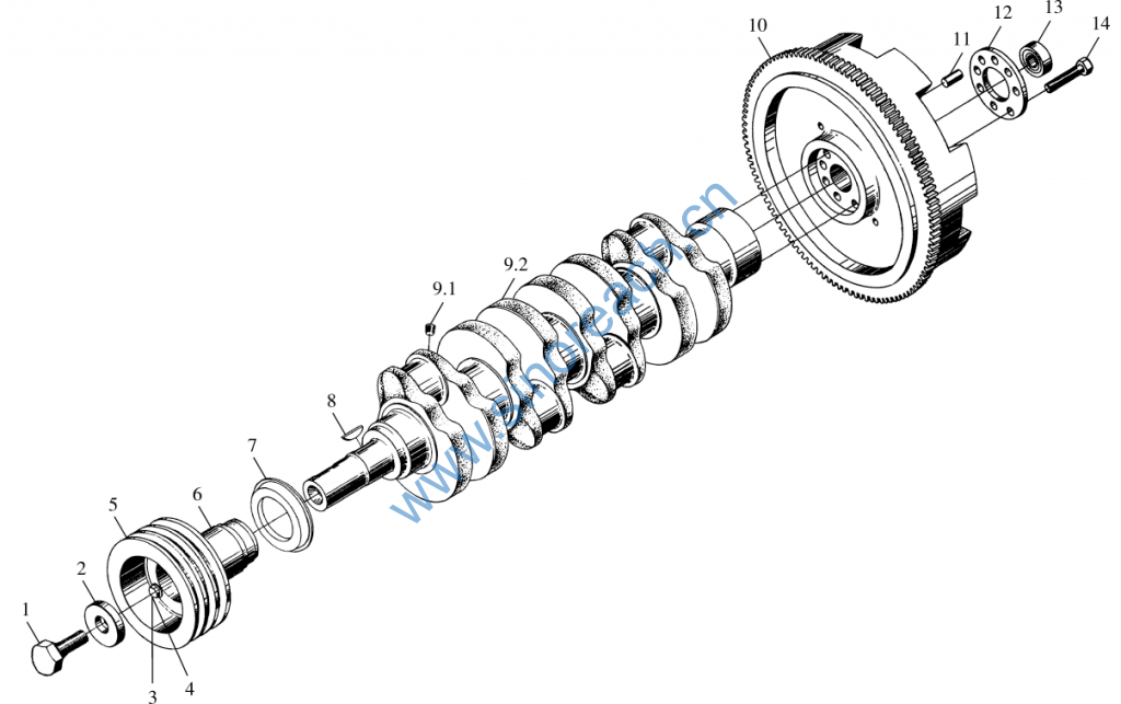 YTR4105T1.040000 曲轴飞轮总成 Crankshaft and flywheel assy
